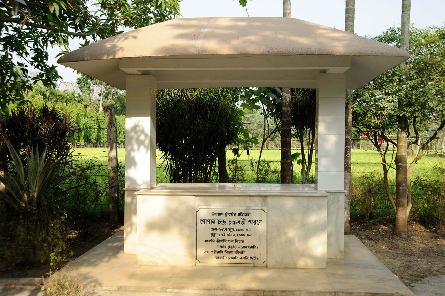 Jyotirmoy Bose had a great devotion to Sri Aurobindo and The Mother. Both Mr Bose and Sri Chakravarty wanted to spread the teaching of Sri Aurobindo among the inhabitants and workers of Ushagram Vikash Kendra. To bring divine influence in the entire locality Gopal Chandra Chakravarty respectfully installed the Relics of Sri Aurobindo inside the Ashram premises in Ushagram.